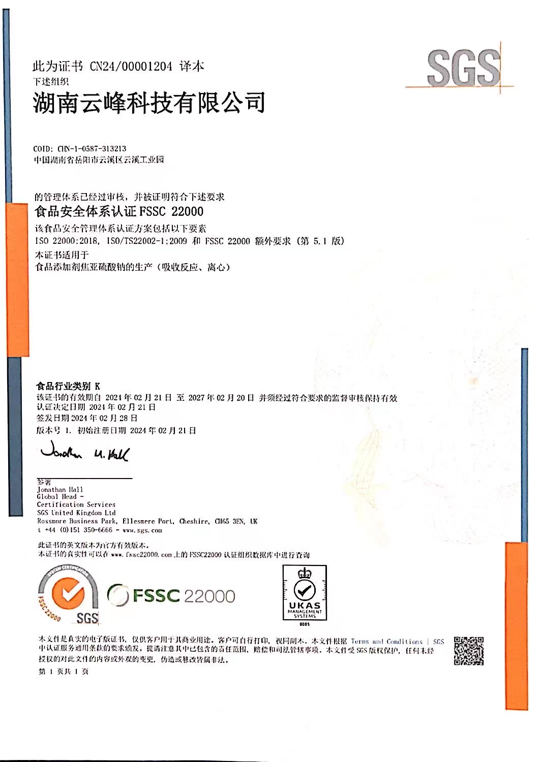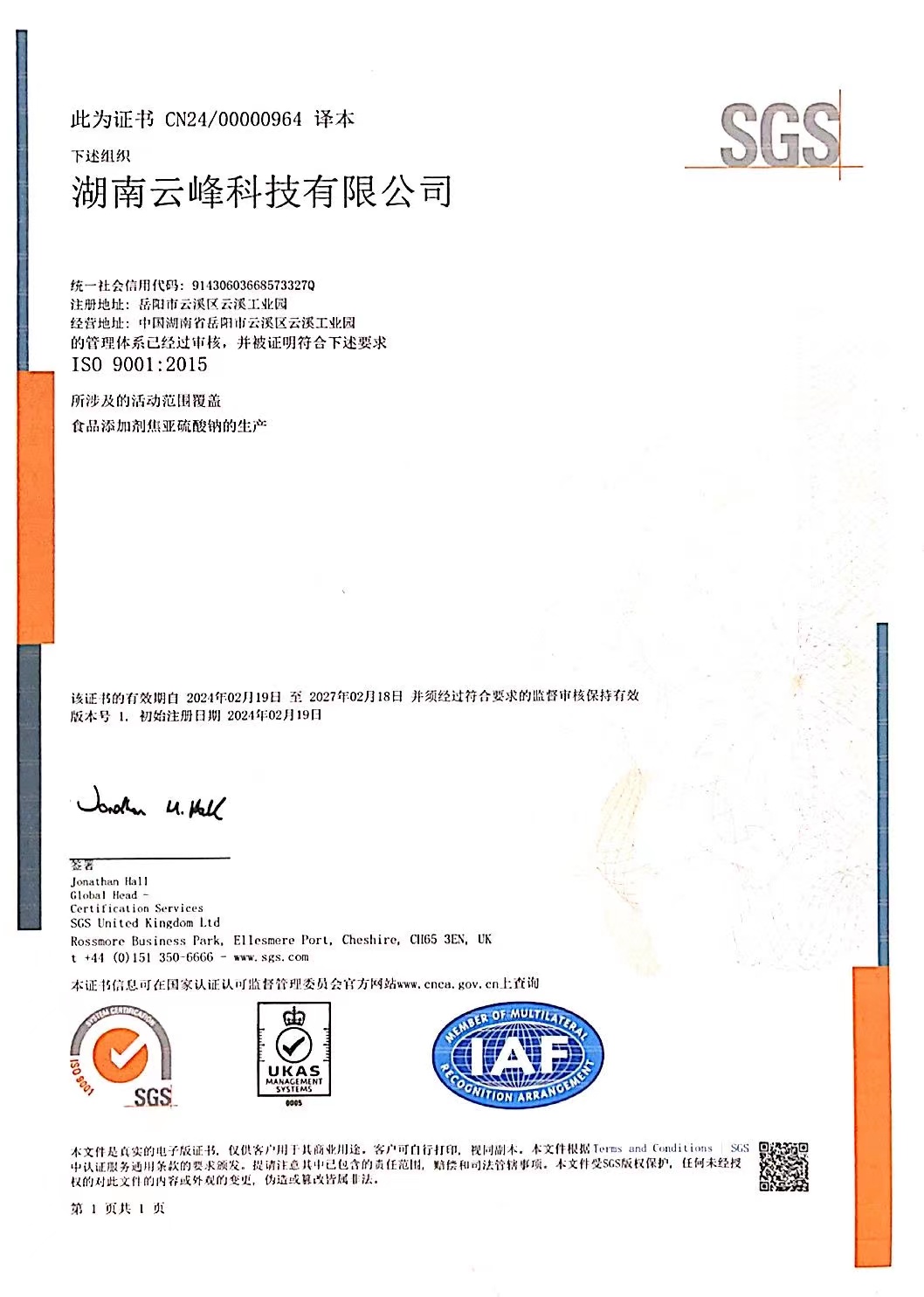 湖南云峰科技有限公司(以下簡稱云峰科技),是由長沙湘岳化工責(zé)任有限公司全額投資以生產(chǎn)焦亞硫酸鈉、亞硫酸鈉等亞硫酸鹽為主營業(yè)務(wù)的高科技企業(yè),具有六十多年的生產(chǎn)歷史,同時(shí)也是焦亞硫酸鈉的國家標(biāo)準(zhǔn)制定參與者。在行業(yè)內(nèi)具有很大的影響力。現(xiàn)有職工八十余人。具有優(yōu)良的經(jīng)營管理團(tuán)隊(duì)和成熟的生產(chǎn)技術(shù)隊(duì)伍。由多位在化學(xué)、化工行業(yè)擁有豐富工作經(jīng)驗(yàn)的工程師及技術(shù)員團(tuán)隊(duì)組建而成,致力于亞硫酸鹽產(chǎn)品的研發(fā)、生產(chǎn)和銷售。2020年公司對生產(chǎn)設(shè)備、安環(huán)設(shè)施及工業(yè)技術(shù)等進(jìn)行了大規(guī)模的升級改造,使焦亞硫酸鈉和亞硫酸鈉的生產(chǎn)工藝更加先進(jìn),技術(shù)更成熟,產(chǎn)品質(zhì)量更優(yōu)良。無論在生產(chǎn)工藝、設(shè)備、產(chǎn)品質(zhì)量、清潔生產(chǎn)、節(jié)能環(huán)保和員工素質(zhì)方面,均處于行業(yè)領(lǐng)先地位。公司的主導(dǎo)產(chǎn)品“云峰”牌焦亞硫酸鈉,歷史悠久,深受國內(nèi)外客戶信賴,產(chǎn)品遠(yuǎn)銷東南亞、歐美、非洲、南美洲等20多個(gè)國家和地區(qū),產(chǎn)品供不應(yīng)求。